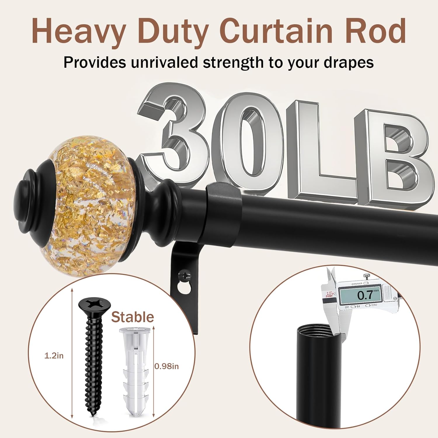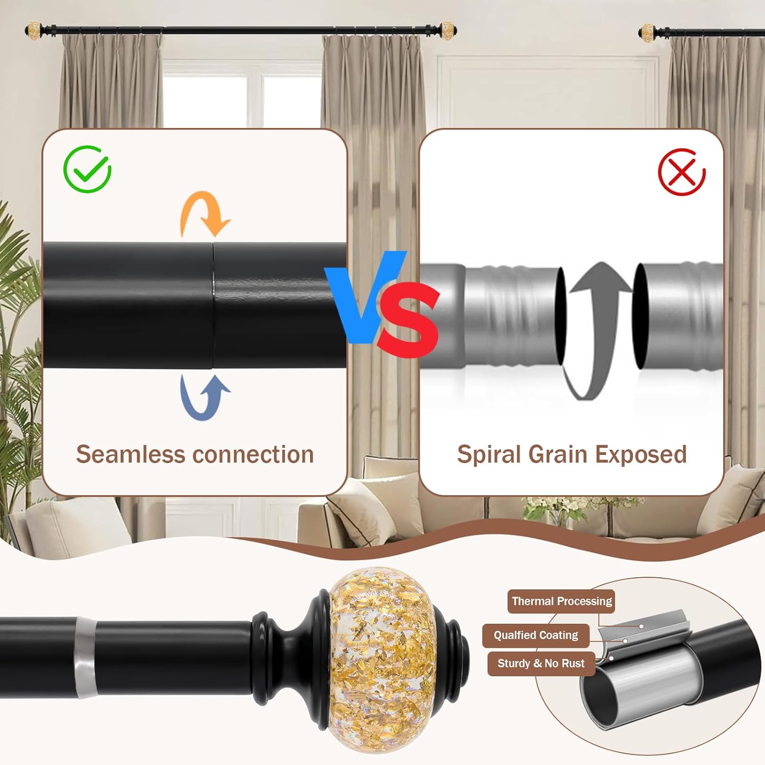 - 【Modern Luxury Curtain Rod】 This luxury curtain rod comes with decorative finials and high-quality iron pipes, can be suitable for many decoration style like modern, vintage etc.