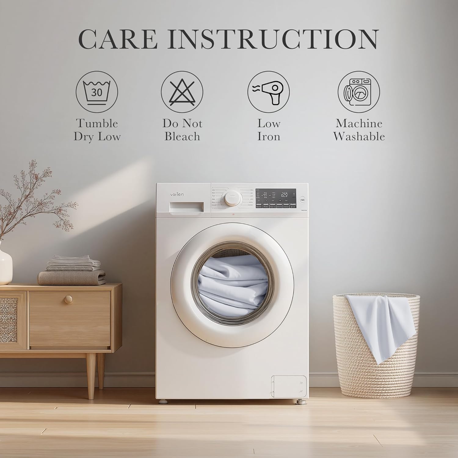 - Easy Care - Machine washable in cold water, use only non-chlorine bleach when needed, tumble dry low and warm iron when needed