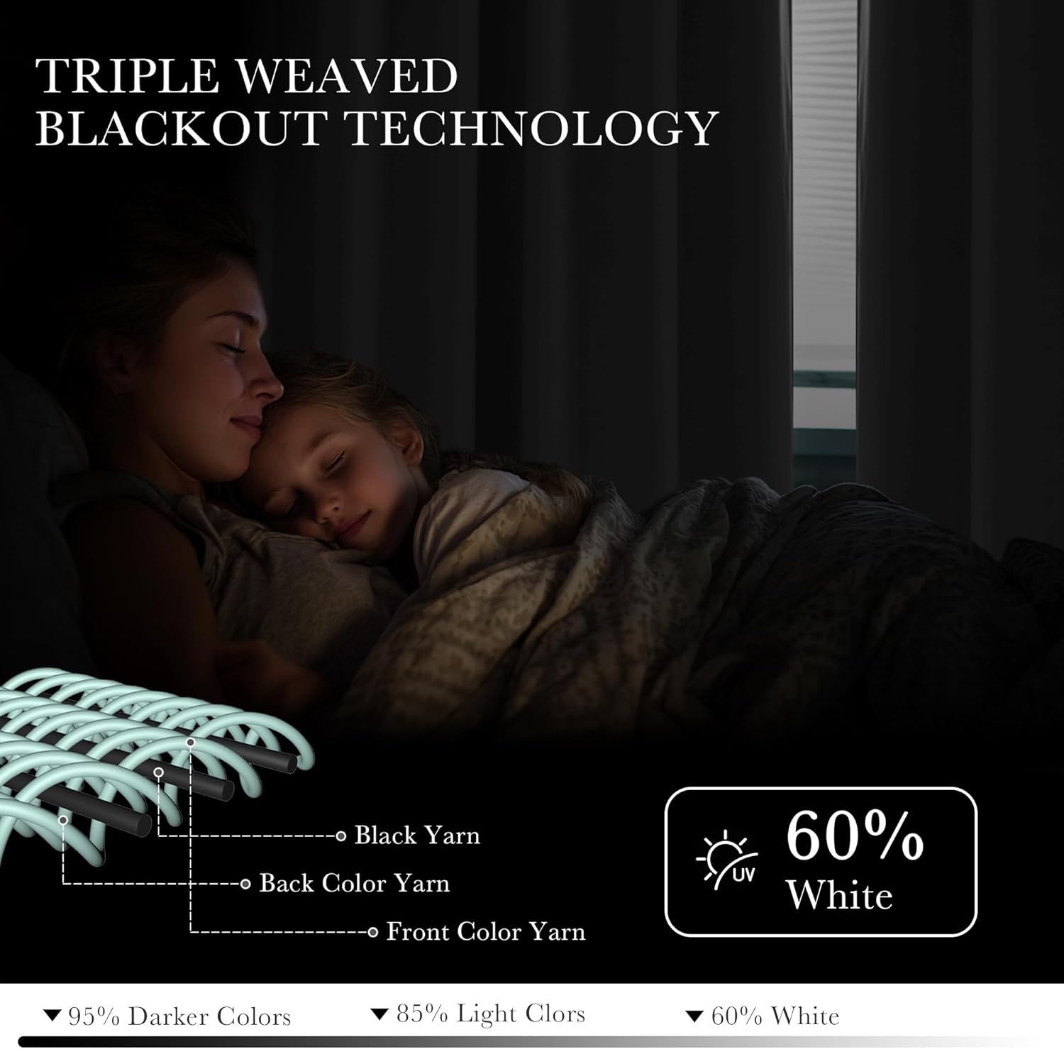 - Good Material - 100% soft polyester fabric. Curtain panels with no liner, fade-resistant, thread trimmed and wrinkle-free. Function 1. 50 - 60% blackout(dark colored works better); 2. Privacy protection; 3. Blocking cold air into the house like a temporary shield or room divider screen.; 4. Soundproof curtains reduce noise from outside or from other room.